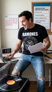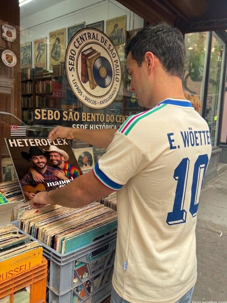 Lá estava eu, de costas para a vitrine, ostentando minha camisa de futebol vintage – um “E. WÖETTER” número 10, com bordas tricolores. Uma elegância anacrônica que, francamente, contrastava lindamente com a decadência charmosa do lugar. Minhas mãos pararam. Meus olhos se arregalaram. Eu havia encontrado a imagem perfeita da descoberta musical que eu nem sabia que o meu cérebro precisava processar.